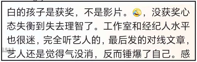 还有人觉得,从这件事就能看出来,白百何的目的性太强了,认为她拍这部电影就是为了冲奖,得知获奖的不是自己,就觉得片方对不起自己,转头就掀桌子。