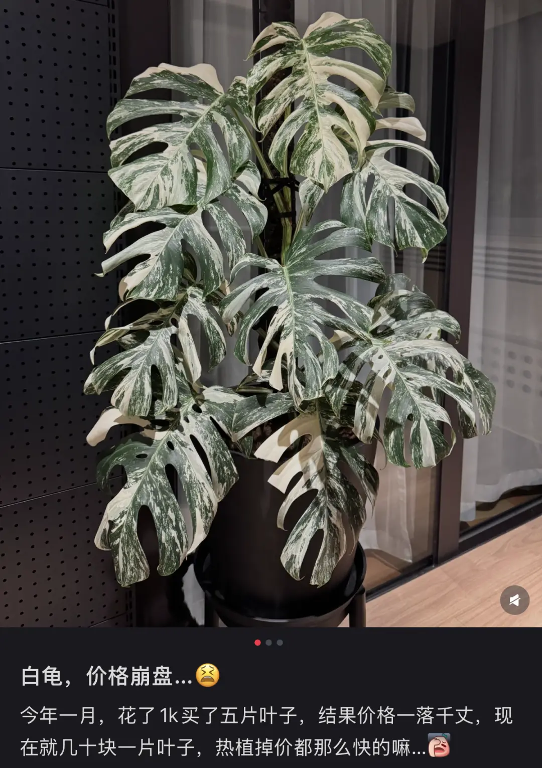 有朋友前几年几千一片叶子买的白锦龟背竹,只在家养了几天,就因为养殖湿度太高,“白锦”褪色了,身价暴跌。