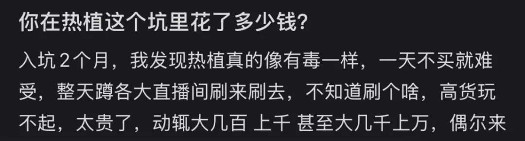 过气网红清仓甩卖的时刻,就是真爱热植的人疯狂补仓的节点。