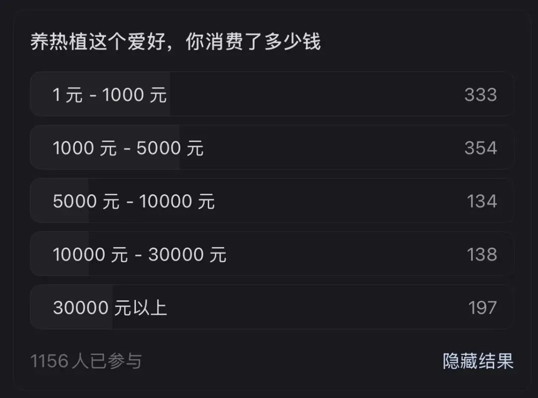 某社交平台上一个热值爱好者发起的1000多人的投票中,有超过三分之二的朋友表示他们花费已经超过1000元。