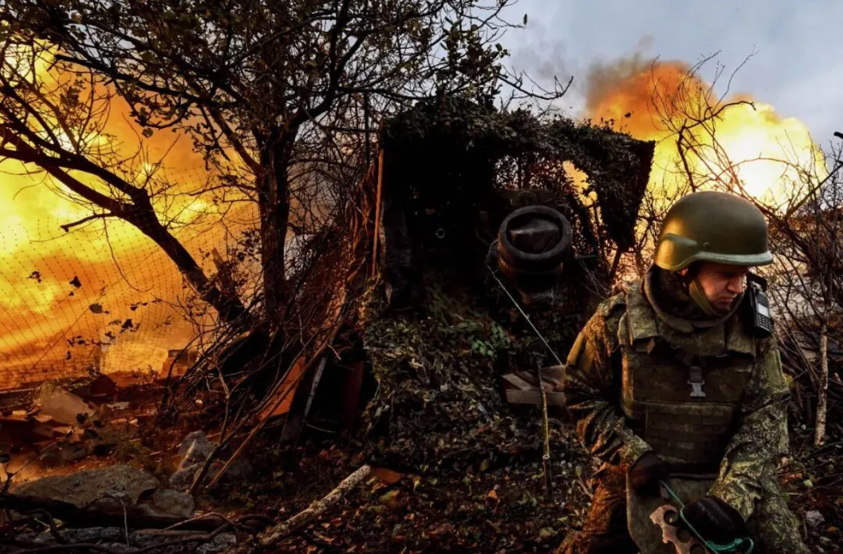10月21日,顿涅茨克地区,俄军士兵向波克罗夫斯克方向的乌克兰阵地发射自行榴弹炮。图/视觉中国
