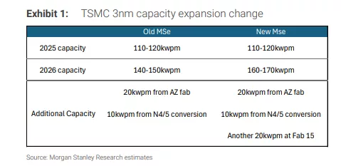 根据该行的预测模型,这一调整将使台积电2026年的3纳米总产能从原先估计的14-15万片/月,提升至16-17万片/月。