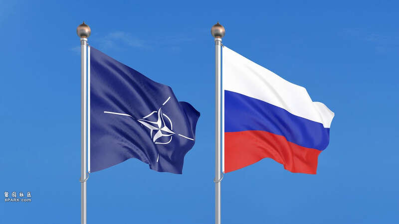 (北约旗帜和俄罗斯国旗)