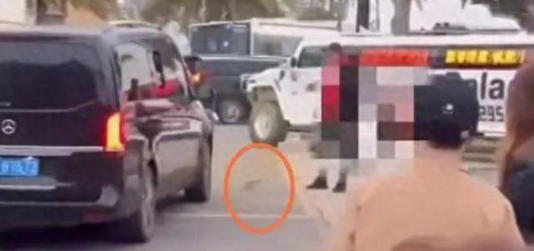 更细节的是,这名被撞的人躺在地上,旁边有很多散乱的珠子。
