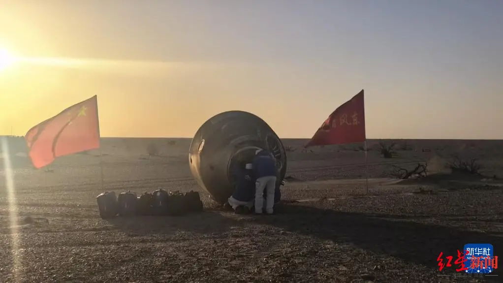 ▲11月14日,载着神舟二十号航天员乘组的神舟二十一号载人飞船返回舱在东风着陆场成功着陆。