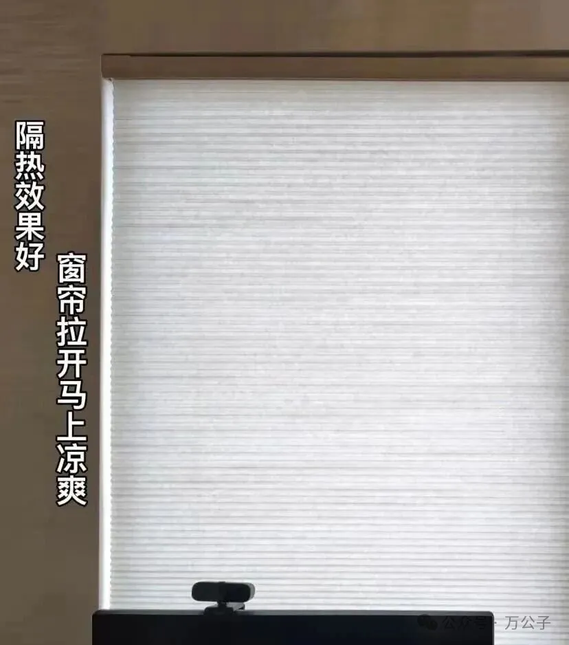 蜂巢隔热帘不仅避光,还透气,装上以后,阳光基本照不进来,还能起到隔音降噪的效果。