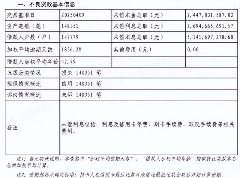 来源:倍可亲(backchina.com)11月14日,民生银行信用卡中心发布的一份不良贷款转让公告,在金融圈之外少有人注意。我仔细看了一下这份数据,突然意识到,它里面记录的根本不是债务,而是一代人沉重压力的缩影。所谓管中窥豹,即是如此。报告中,包含14.84万笔信用卡透支不良贷款,涉及14.78万名借款人,未偿本金24.47亿元,利息及费用26.95亿元,本息合计达51.42亿元。