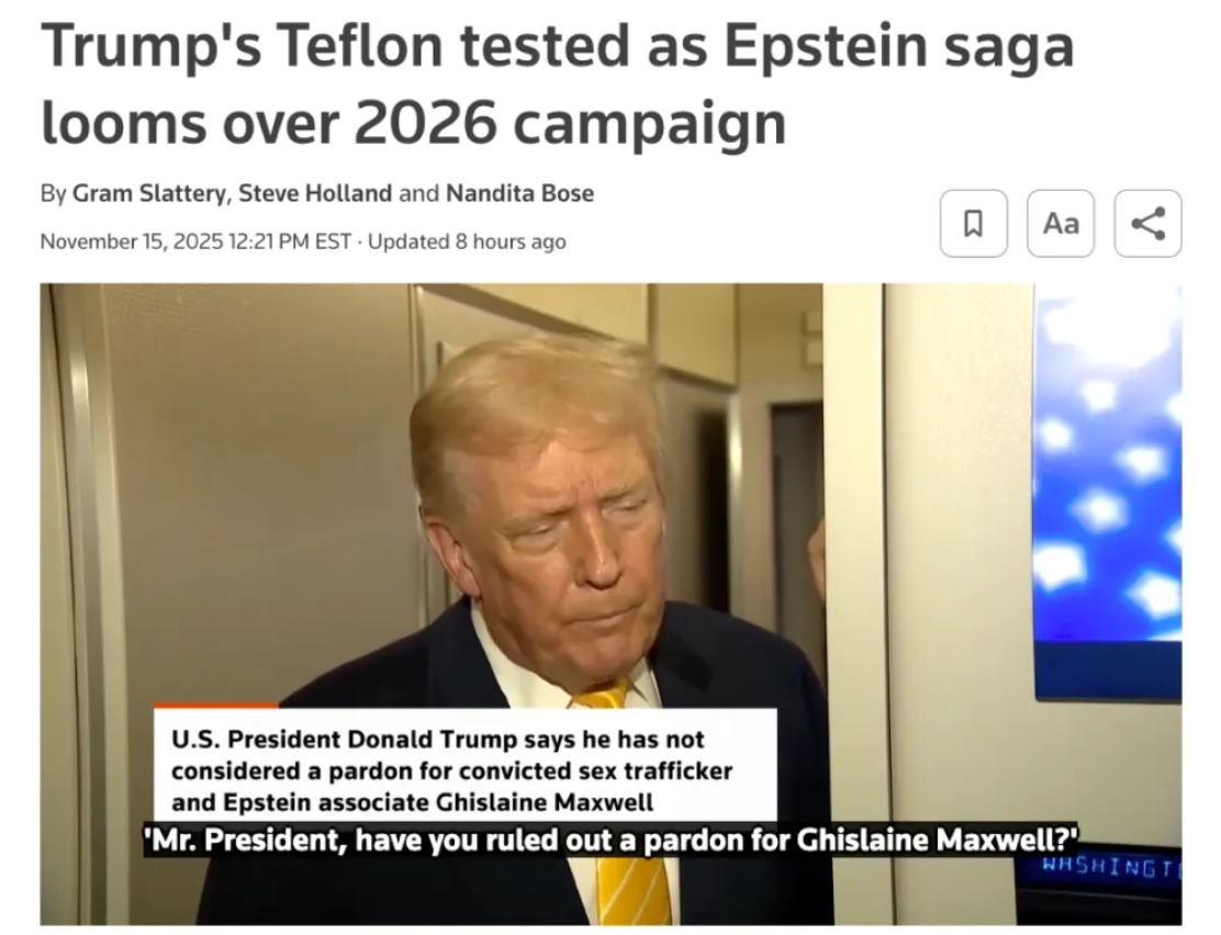 受害者的声音同样被淹没在党争噪声中。舆论反复解读个别受害人对特朗普的只言片语,却很少再谈她们对整个体系失灵的控诉。当“爱泼斯坦档案”一次次被当作选战工具,社会的愤怒感与正义感也在不断被消耗,人们习惯了这类新闻,却越来越不相信它能真正导向清晰的真相和实质的问责。