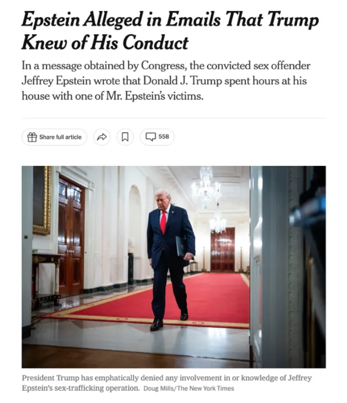 更关键的是,民主党选择在政府刚刚结束“停摆”、舆论本应追问“谁应为政府‘关门’负责”的时间点抛出邮件,明显是要借用“爱泼斯坦”这个高度情绪化的符号,压过枯燥的预算争执。