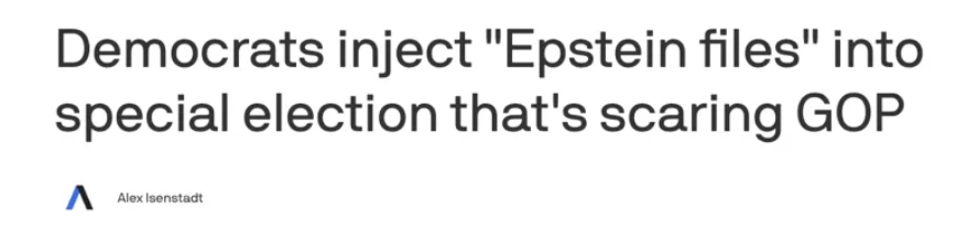 △美国数字新闻网站Axios报道,民主党人希望公布爱泼斯坦档案的立场,能够帮助分裂保守派阵营的选票