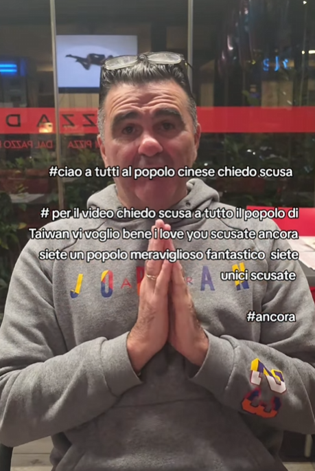 他补充解释说:“我们意大利人是出了名爱开玩笑。我再次向你们道歉,向台湾人民道歉。中国加油,台湾加油。”