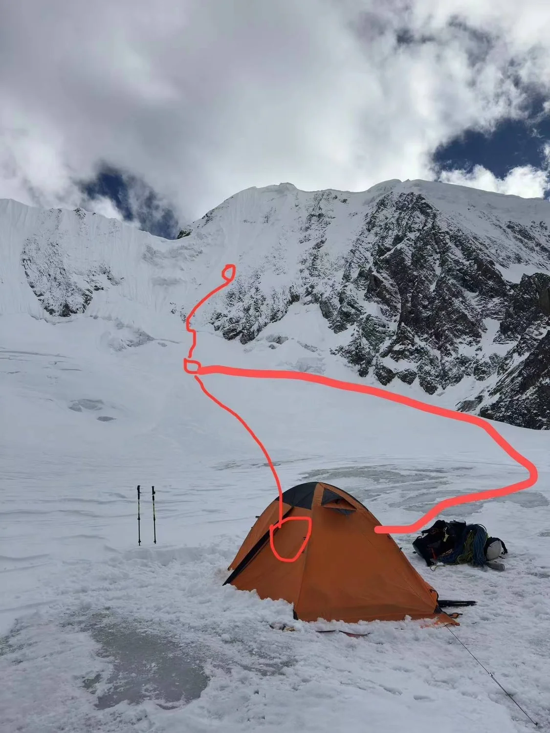 回去后,朱鹏便查阅此前攀登者的登山报告。他了解到,2011年,攀登者严冬冬和周鹏开辟了勒多曼因北壁直上中央支脊路线,但时隔14年,几乎无人再登顶。朱鹏想开辟一条新路线,有一份自己的荣誉,“我相信我能登上去”。