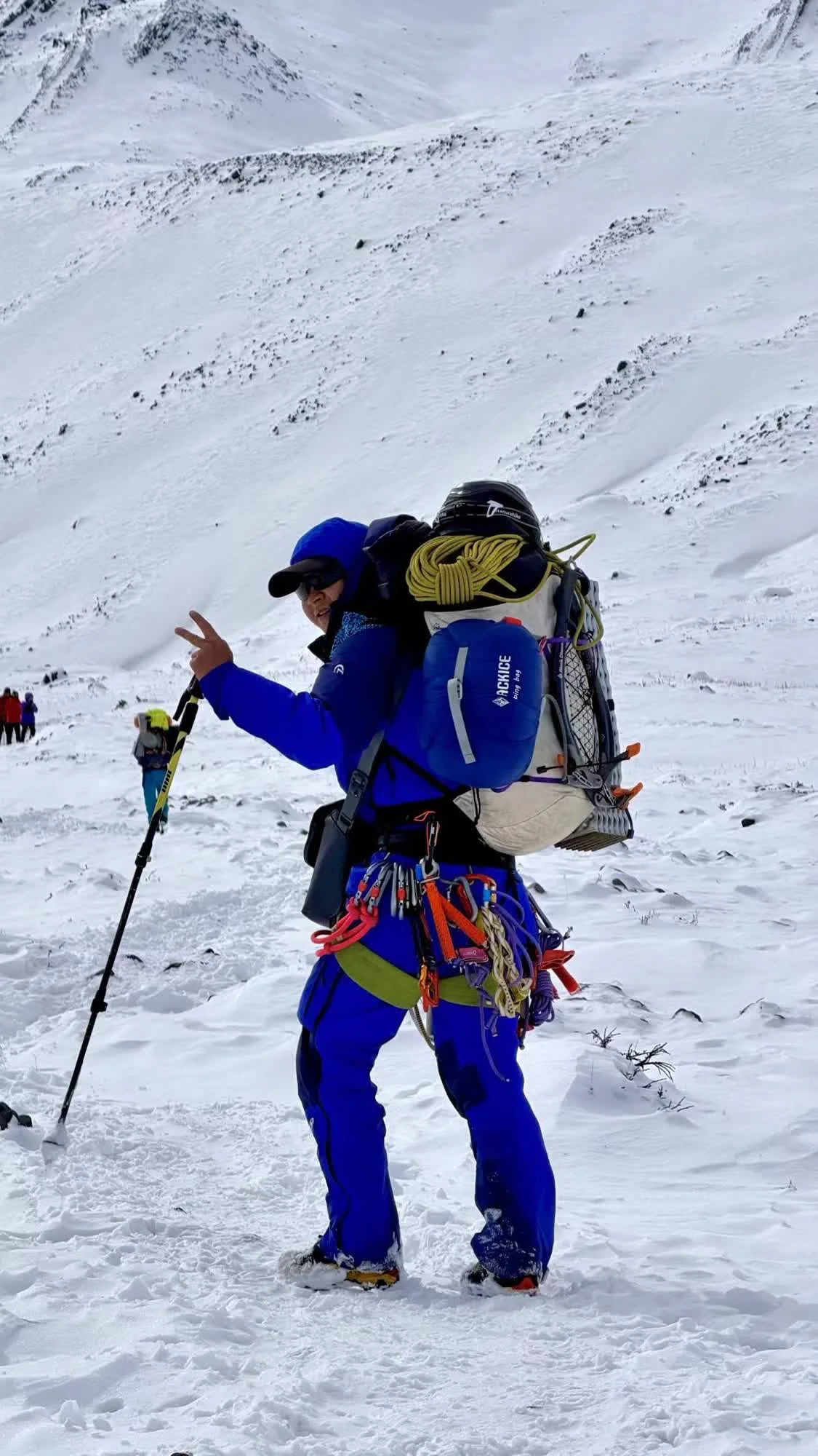2022年第一次登山,他穿着篮球鞋、摩托车的重型装备,尝试登四川的巴朗山(最高峰海拔5072米)。不料遭遇十几米的滑坠,险些丧命。那之后,他开始系统学习如何专业地登山。