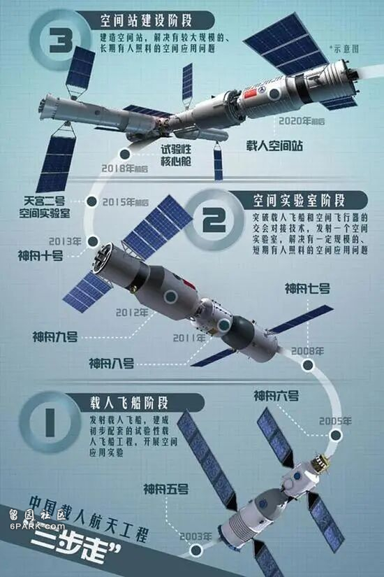 咳咳,说正经的。为了更好地理解中国空间站“空气炸锅”的含金量,咱们得先回顾一下空间站的发展历程。1992年,当世界还聚焦于国际空间站时,中国不声不响地确立了载人航天工程的「三步走」战略:载人飞船天地往返、太空行走和交会对接、建设并运营空间站。这个战略的前瞻性在于,它明确以空间站为最终目标,循序渐进地构建能力。