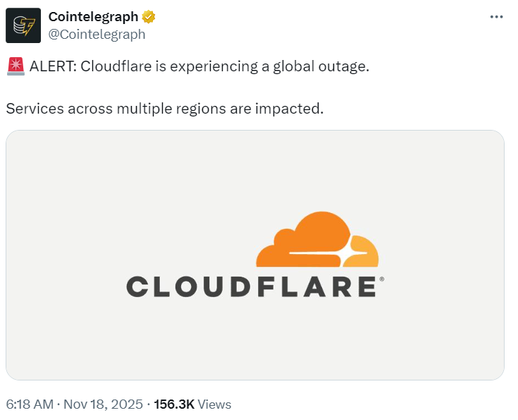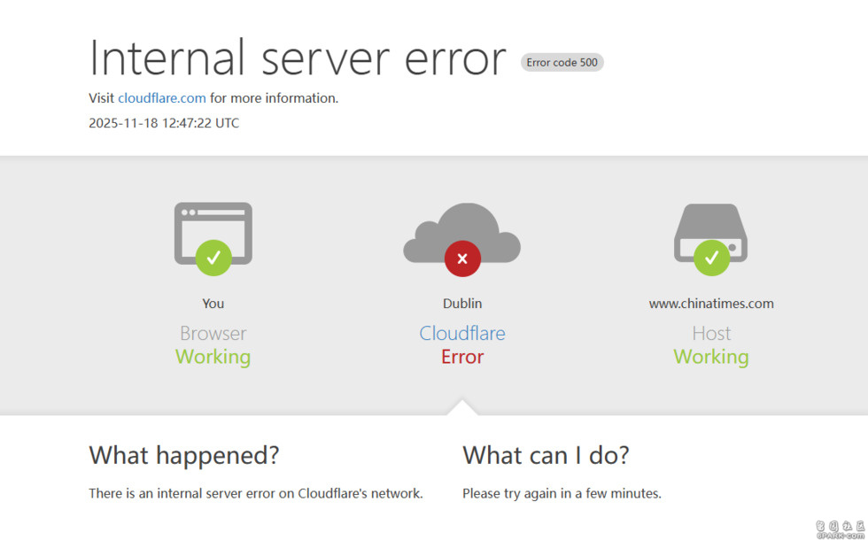全球多个网站周二(18日)晚间突然大当机,甚至连负责监测网路服务断线的 DownDetector也一度无法运作,港媒报导,疑似网路服务巨擘Cloudflare 出现技术异常,导致大量网站接连瘫痪,包含IG、脸书以及X等社群媒体平台,随后Cloudflare已经发出声明,全球网路服务确实出现问题,但具体造成的原因尚不明。
