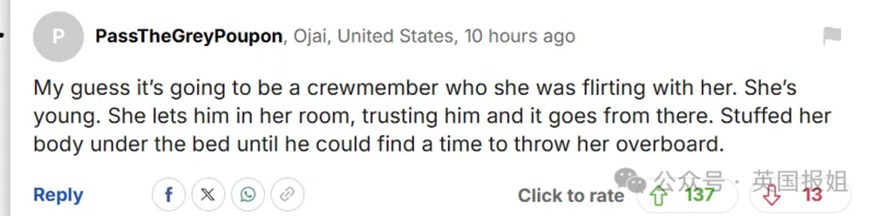 也有人怀疑安娜可能被船上的工作人员盯上了。