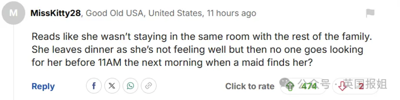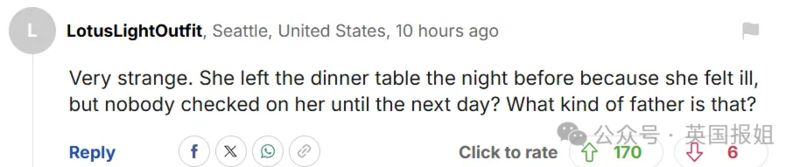 “太奇怪了,她因为不舒服提前离开晚餐,然而到第二天之前都没有人检查过她的情况?这是什么样的父亲?”