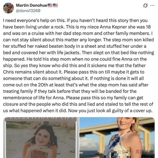美国18岁啦啦队长游轮密室死亡 舅舅爆凶手是他