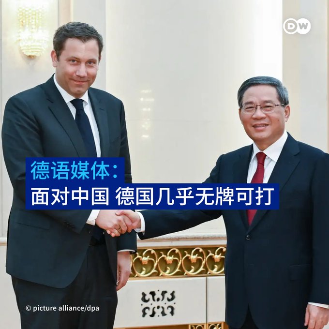 ”事实上,克林拜尔的一系列表述都是无力感的外现。他呼吁中国,为结束俄乌战争付出更多的努力。而现实却是,中国党和国家领导人习近平(专题)正是俄罗斯总统普京的坚定盟友。德国副总理兼财长克林拜尔还强调,中国方面注意到了德国对稀土供应问题的担忧。而事实却是,中国看到了德国人的恐慌。毕竟,中国对德出口已经是德国对华出口的两倍。
