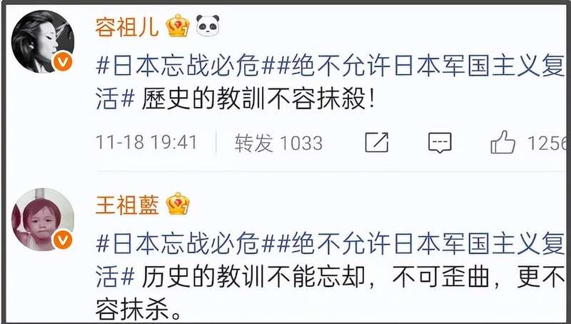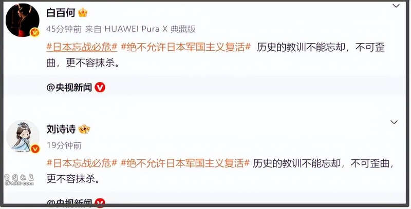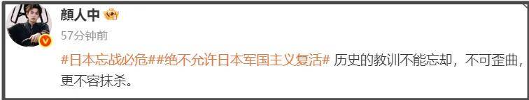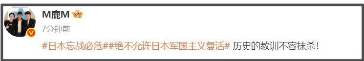 众星转发“日本忘战必危”!张馨予:勿忘历史教训
