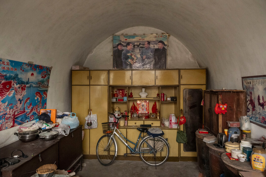 他的两个儿子离开大寨到别处找工作——一个当司机,另一个在煤矿——因为“没有年轻人愿意再下地干活了”。他和妻子共居的单间屋里挂着毛泽东和习近平的海报,但这两幅画像的尺寸远不及另一幅财神像。