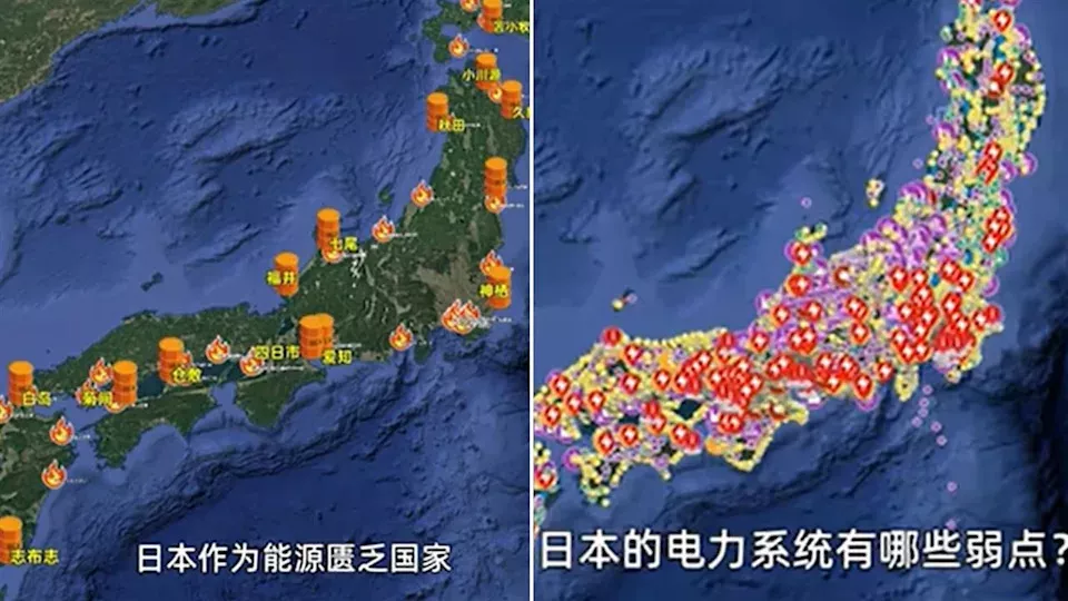 中国博主制“扒光日本命脉地图” 喊“一击必瘫”
