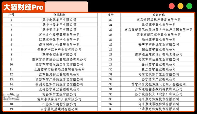 今年1月份,苏宁电器被申请破产重整,到4月份,38家苏宁系公司合并重整,电器、置业、体育、文化、酒店、商管、院线、金控等,一网打尽。