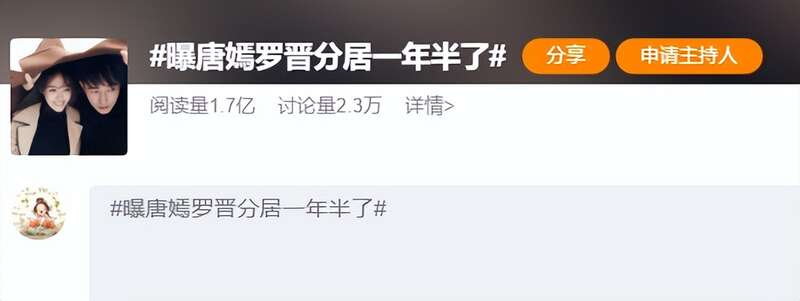 这瓜吃的网友一头雾水,具体是谁大家都说不清,可很快,狗仔站出来终结疑问,声称唐嫣和罗晋已经分居一年半,一个住北京,一个在上海。