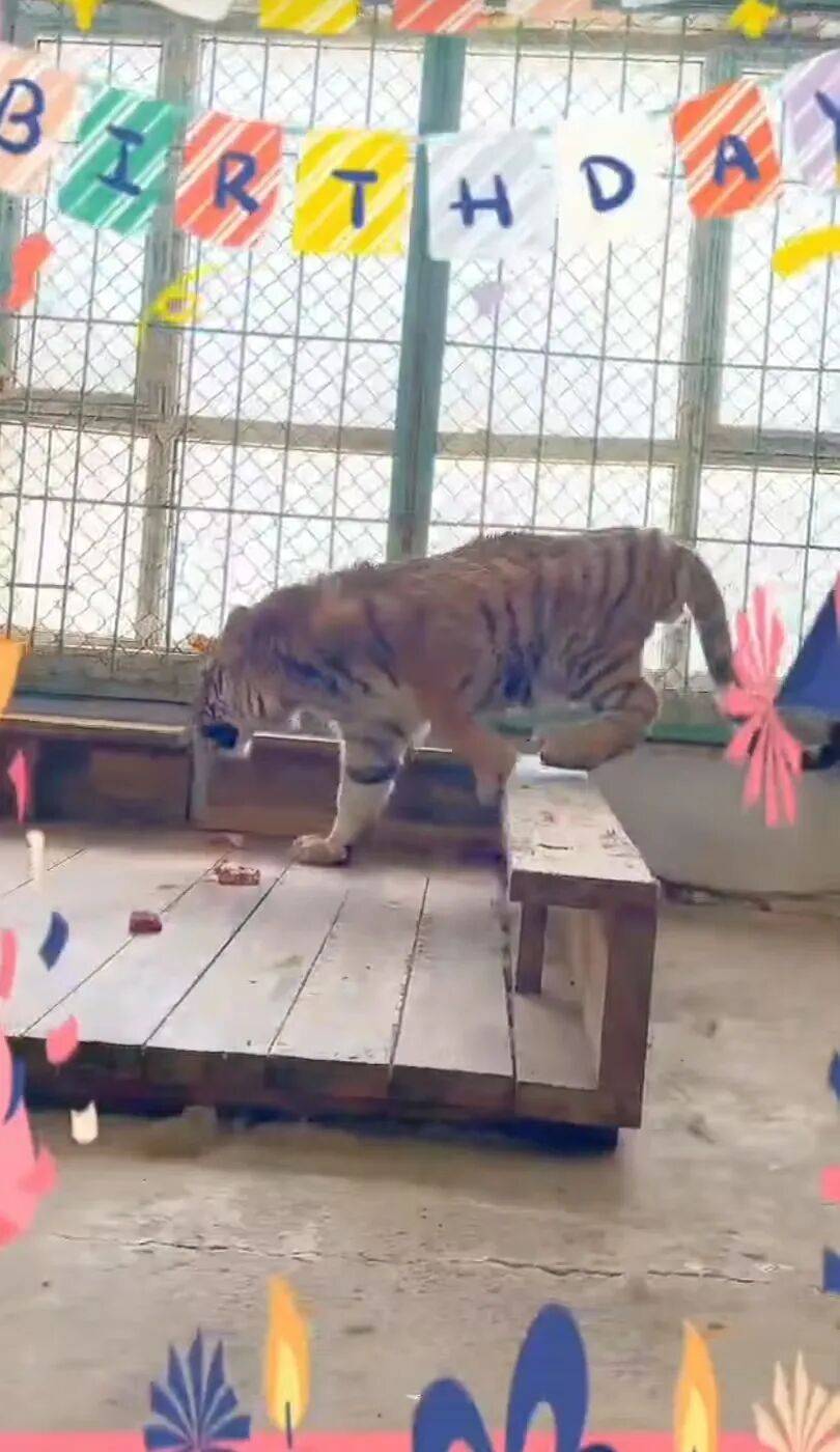 ▲小独苗生日时,虎林园发布的视频截图。 受访者供图