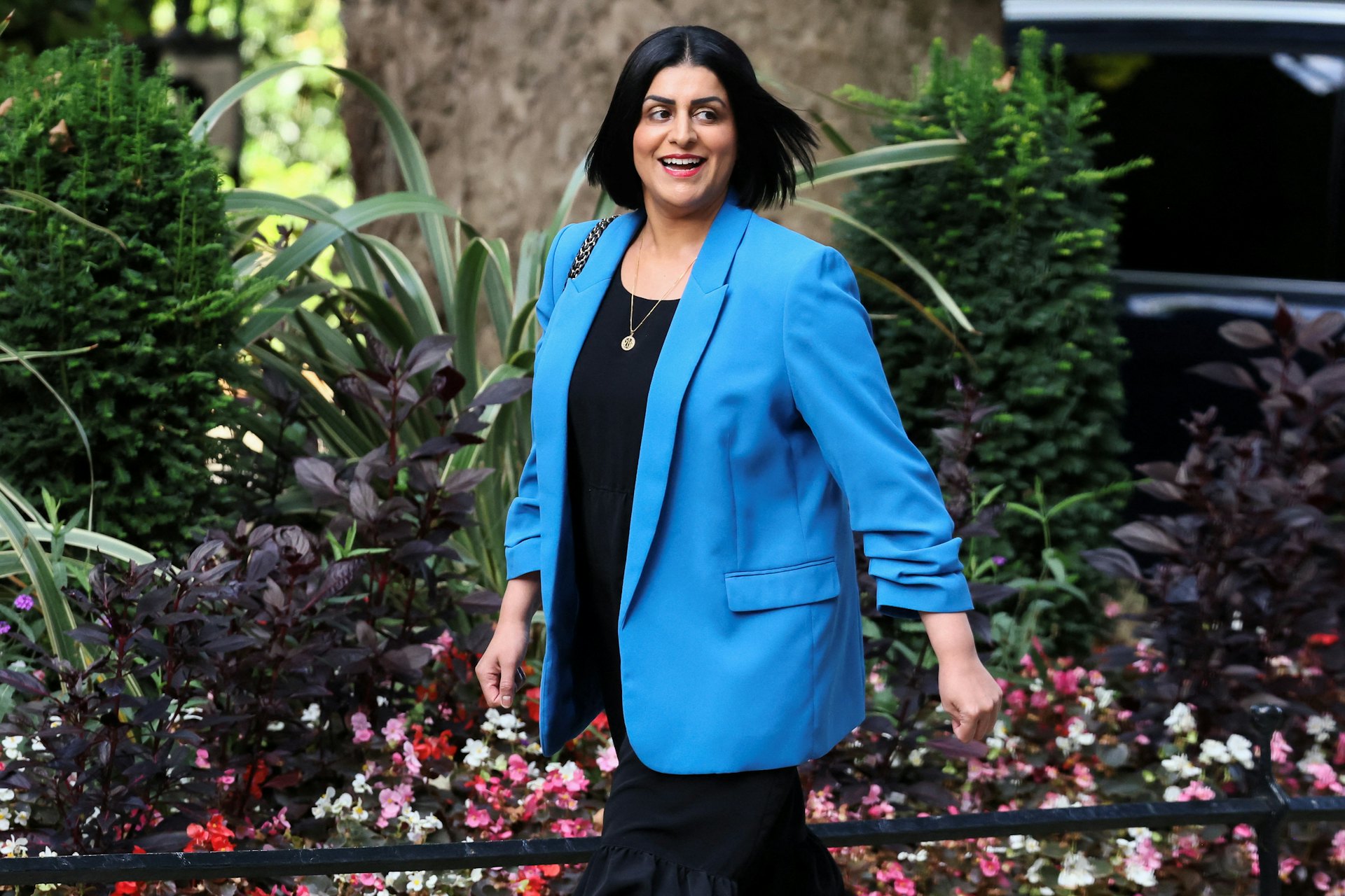 2025年9月,英国伦敦,内政大臣马曼婷 (Shabana Mahmood)步行离开唐宁街10号首相府。(Reuters)