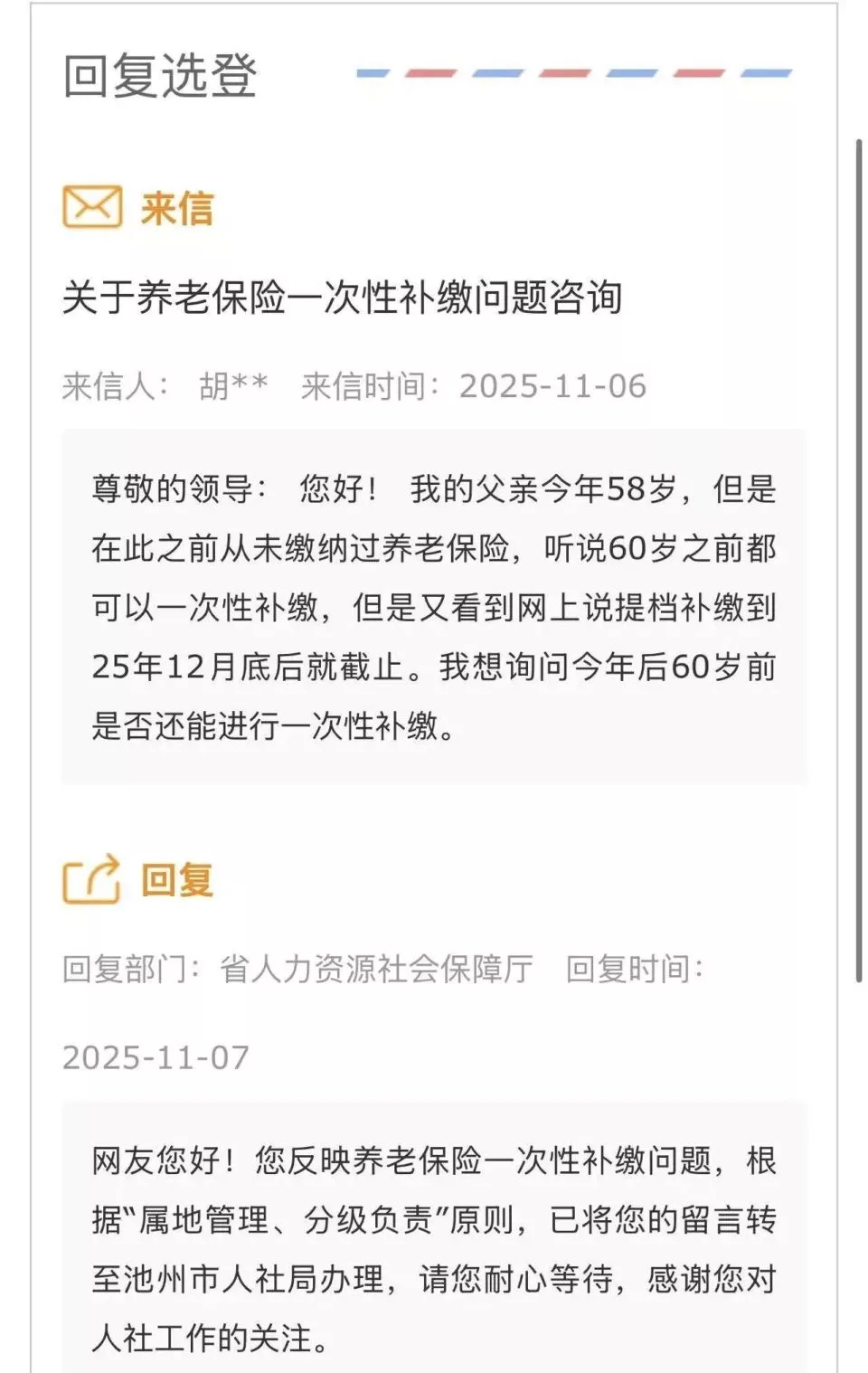 ●安徽省人力资源和社会保障官网,有网友关心养老金补缴截止日期。图源网络