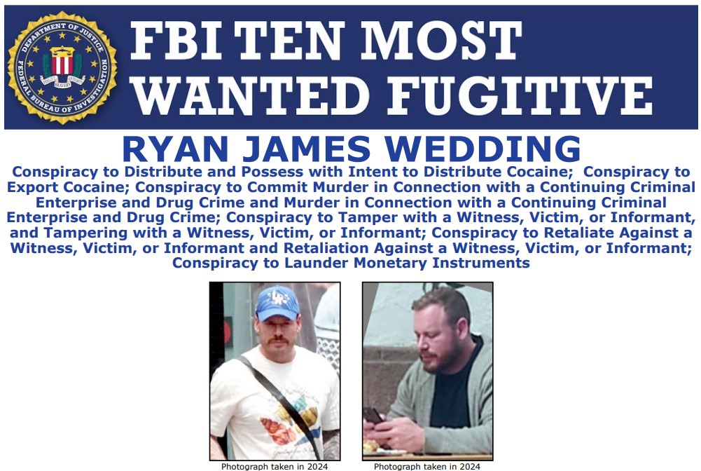 Ryan Wedding is one of the FBI’s 10 Most Wanted Fugitives - allegedly responsible for an untold amount of Americans suffering through narcotics trafficking. This week, the @FBI and great partners took down a major part of his network - 10+ arrests - and we’re one step closer to… pic.twitter.com/Kz8RGZZRrs