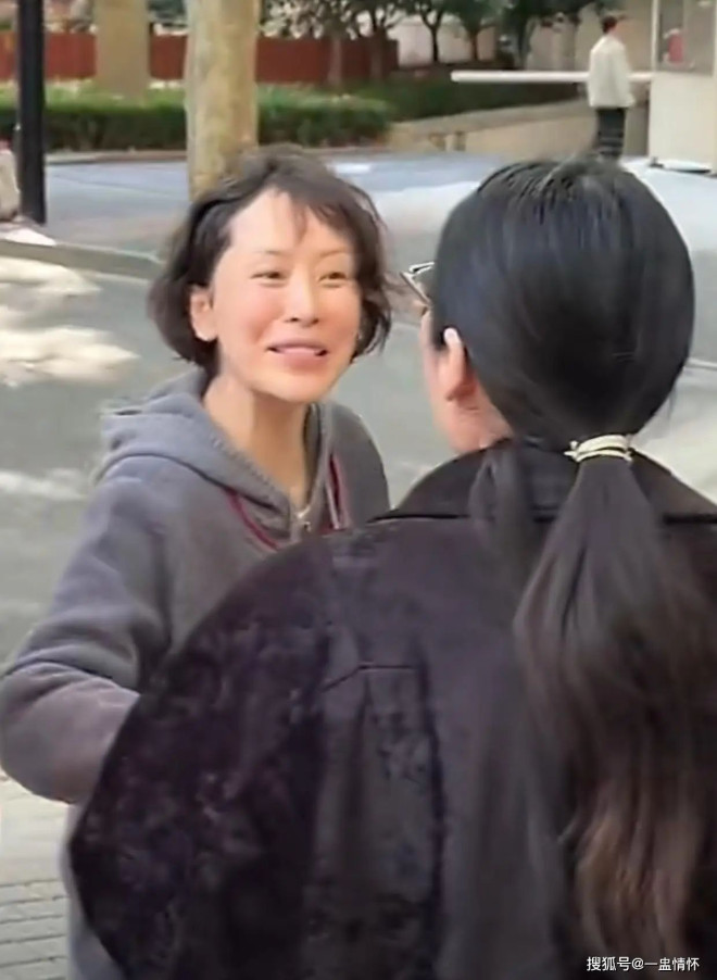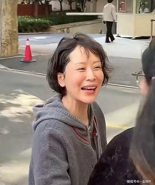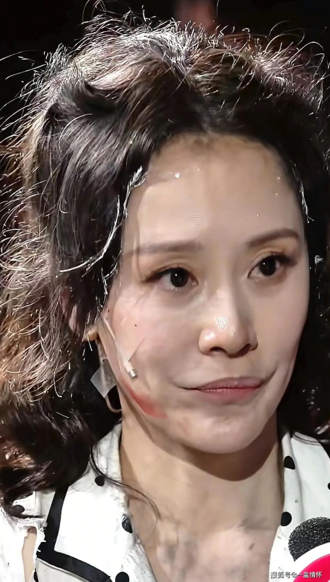 更让人揪心的是她的素颜状态:没有化妆的脸颊看着格外憔悴,嘴唇苍白中带着一丝紫色,笑起来还有轻微外翻,唇周一圈泛着深紫色,显得有些奇怪;原本留过一段时间长发、尽显温婉的她,这次又剪回了短发,还做了微卷造型,可额前冒出的许多白发,让整体造型更添几分苍老感。