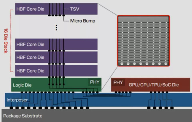 HBF架构剖面图,与GPU合封