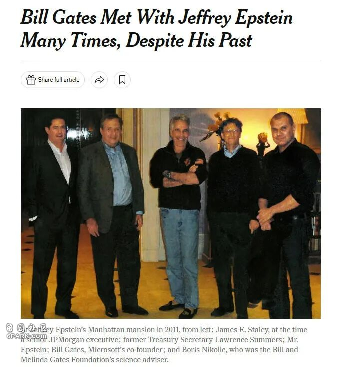 因为这个月,《纽约时报》发表了那篇文章和照片,向世人揭开了盖茨和爱泼斯坦的联系。