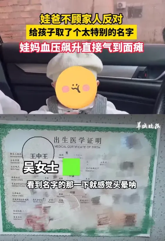 山西一位宝妈因丈夫给儿子取名“王中王”,气得一度面瘫。