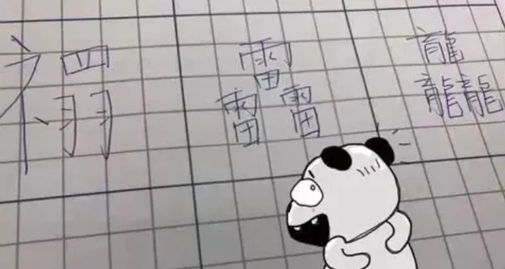 另外,还记得那个叫“禤靐龘”(xuān bìng dá),因写名字写崩溃的的小朋友吗?