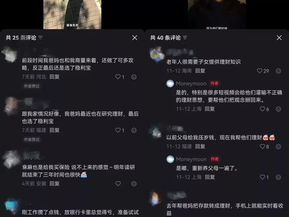 而在社交媒体上,也有许多相同经历的年轻人“吐槽”着类似的经历。有人在朋友圈调侃自己成了“家庭专属理财客服”,有人在分享“帮父母理财指南”;还有人组建了互助群,交流如何平衡专业建议与父母的接受度,语言间尽是无奈。