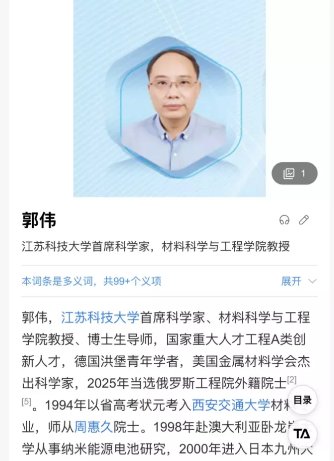 这是郭伟百度百科的介绍,履历很是光鲜亮丽,一大堆头衔,近200篇论文,完全看不出一点破绽。