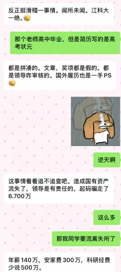 有同学说,他在职期间年薪、安家费及科研经费奇高,骗走学校近千万元资金。