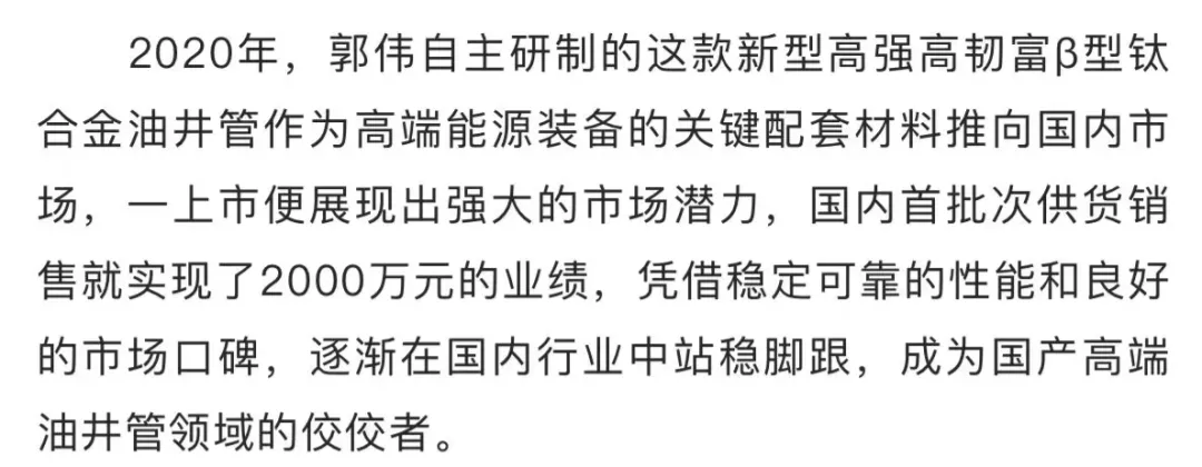 文章甚至还称,郭伟在2020年研发的成果,展现出了强大的市场潜力。