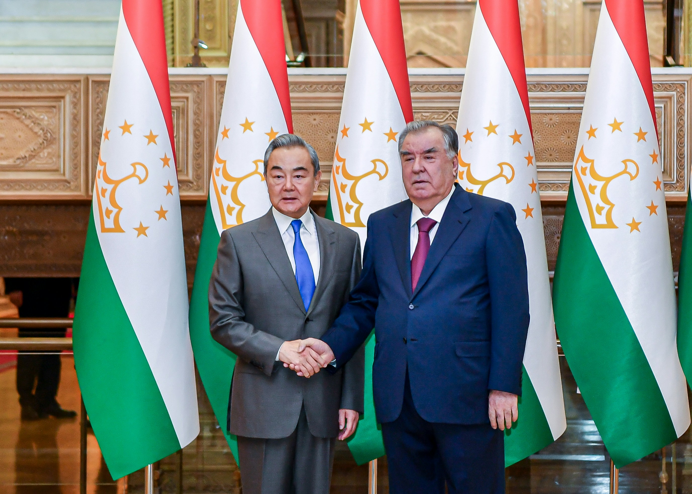 11月22日,塔吉克总统拉赫蒙在杜尚别会见中共中央政治局委员、外交部长王毅。(新华社)