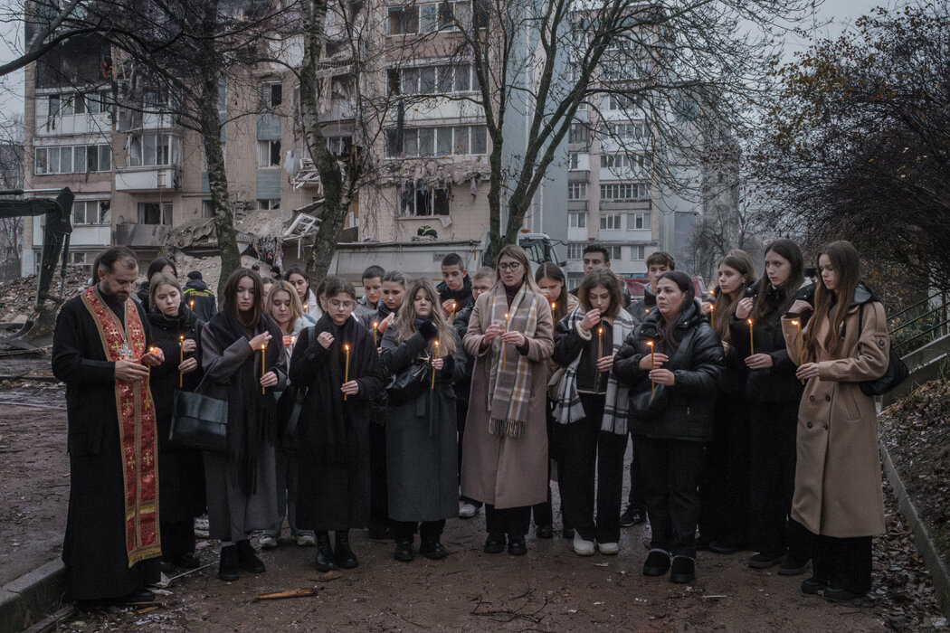 在乌克兰西部城市捷尔诺波尔,一栋居民楼上周遭俄军袭击后,人们为失踪者守夜。泽连斯基说:“我们的人民、公民、政治人士,每一个人。我们必须重整旗鼓。” MAURICIO LIMA FOR THE NEW YORK TIMES