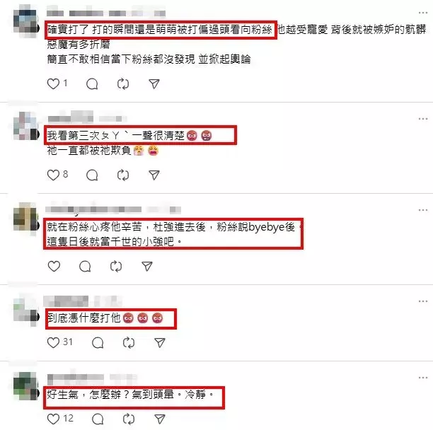 于朦胧被杜强在保姆车上搧巴掌的影片一经网民们转发,引起一片怒骂及心疼,“我差点泪崩,为什么霸凌我们萌萌”、“真是打了他一下”、“确实打了,打的瞬间还是萌萌被打偏过头看向粉丝”、“好生气,怎么办?气到头晕。冷静。”、“好心疼,不敢看了。”,也有网友气到直问:这浑蛋现在到底在哪?