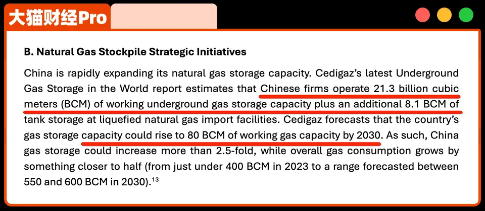 化石能源,除了石油还有煤炭和天然气,外国人帮我们算过,我们的煤炭已经“净供应过剩”,天然气有213亿立方的地下储存能力和81亿立方罐储能力,到2030年,总量能到800亿立方。