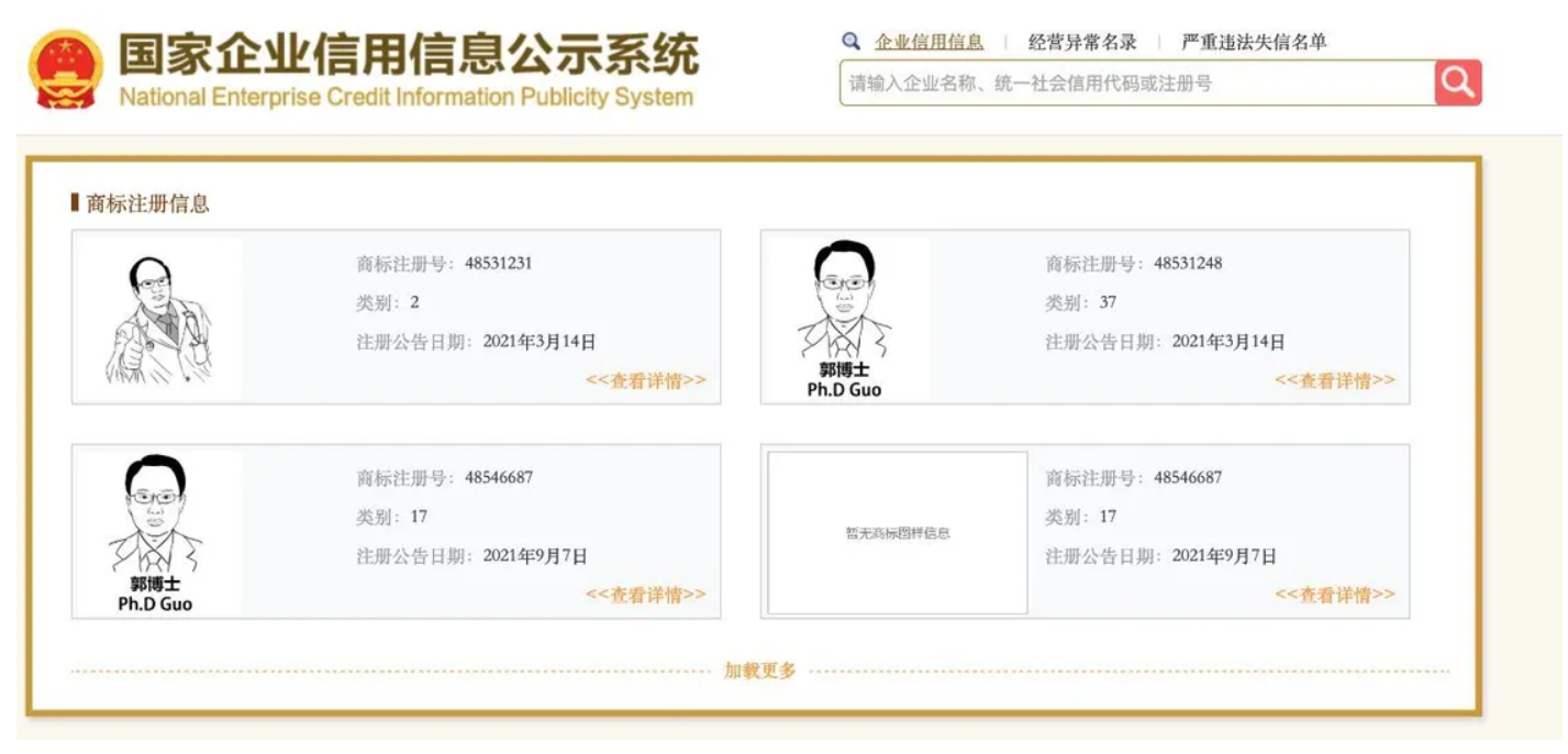 此后,郭伟还曾作为人才飞地的代表参加当地活动并发言。2021年,郭伟通过名下上海叁健成功注册了几个以“郭博士”字样以及郭伟卡通形象为核心的注册商标。郭伟为自己包装的“郭博士”身份至此接近完全体。