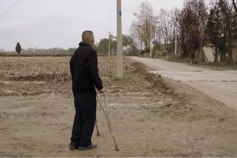 后来,赵晋安没钱复健,就拿两个核桃握在手里,慢慢转手指头,之后换成台球。这两年,他才能拄着拐杖一点一点挪步子。天气冷、心情郁闷的时候,腿脚会止不住抖动。种地干活,都靠不上他。
