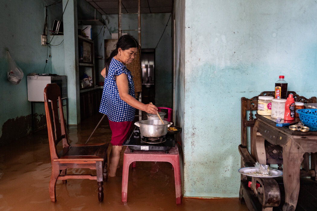 11月19日夜间,他家所在的庆和省洪水在20分钟内就上涨了约一米。为了救家人,他不得不砸破自家屋顶。他的一个孩子险些溺水身亡,至少三位邻居在洪灾中丧生。