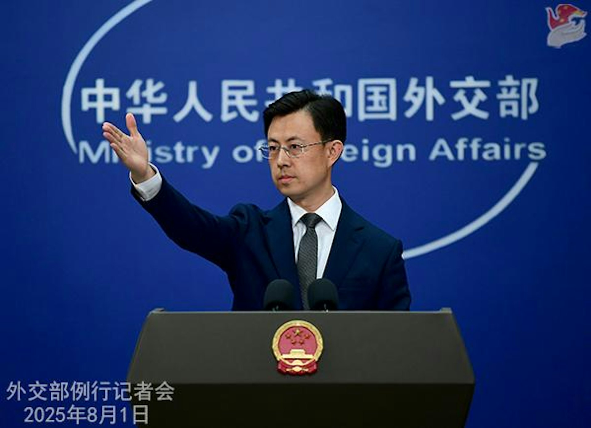 2025年8月1日,中国外交部发言人郭嘉昆主持例行记者会。(外交部图片)