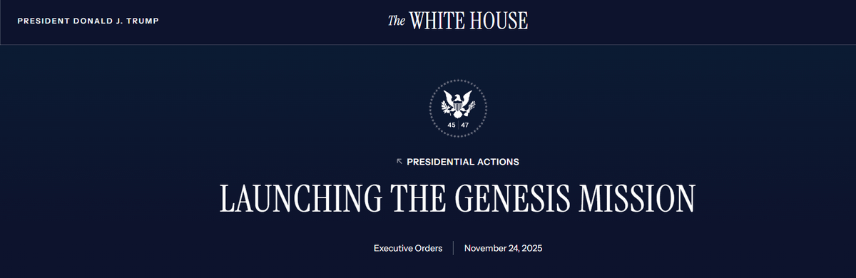 Just in: Trump signs executive order launching the “Genesis Mission” — a national effort to harness AI and federal scientific data to accelerate research, energy, and defense science.